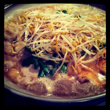 連日お鍋です。一昨日はちゃんぽん鍋。ワンタンや、餃子を入れて、もやしやにらをたっぷり。