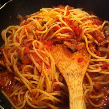このトマトソースパスタは、長年改良したレシピで、まず満足できるものになりました。