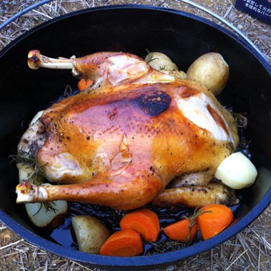 今日のメインは友人Kさんのご寵愛をうけるダッチオーブンでのローストチキン。