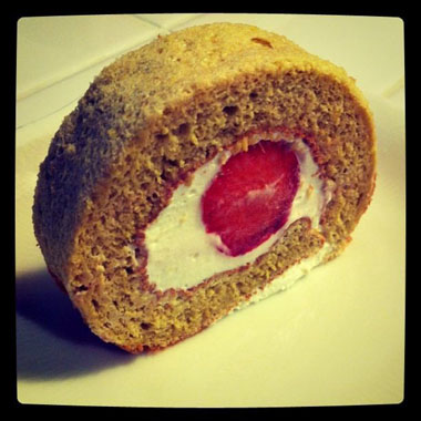 久々のロールケーキ、巻きがいまいちうまくいかずぶにゅっと生クリームが飛び出したのもご愛嬌。