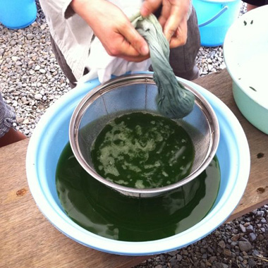 もう一色は藍。こちらは葉っぱを揉みしごいて染料を作るところから。