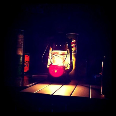 空には星、包まれる漆黒の闇、ぼおっと灯るランタンのオレンジの灯り。